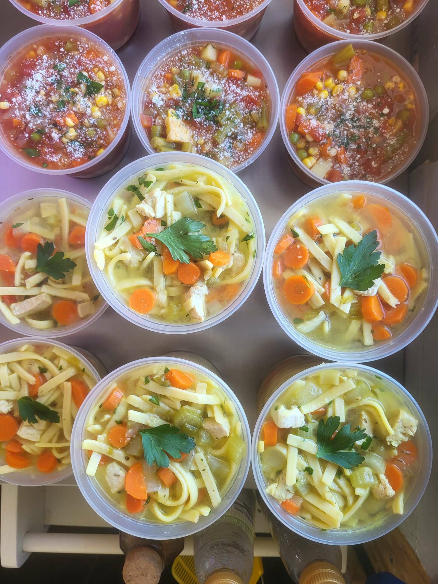 One of America's most beloved soup done MY way. A flavor filled broth with oodles of carrots, celery. onion, chicken, kluski noodles and my secret for perfect seasoning. Try it and see if you don't agree about the soon to be famous name! Not a fan of noodles? Just let me know and I will make it with barley or farro or whatever grain you would like or with none at all.😉
